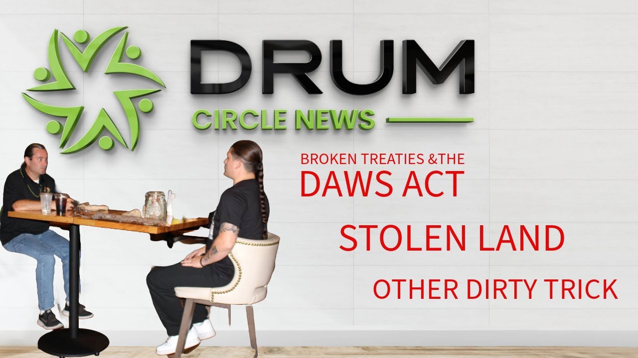 In this impactful 7-minute episode of Drum Circle News, Dylan Aubrey and Sean Milanovich delve into the tragic history of broken treaties that facilitated the theft of Native lands by settlers. They discuss the Dawes Act, a law that legalized the expropriation of Native lands and stripped Native peoples of their rights to claim it. Dylan shares how these injustices affected his own tribal lands and continue to impact his community today.