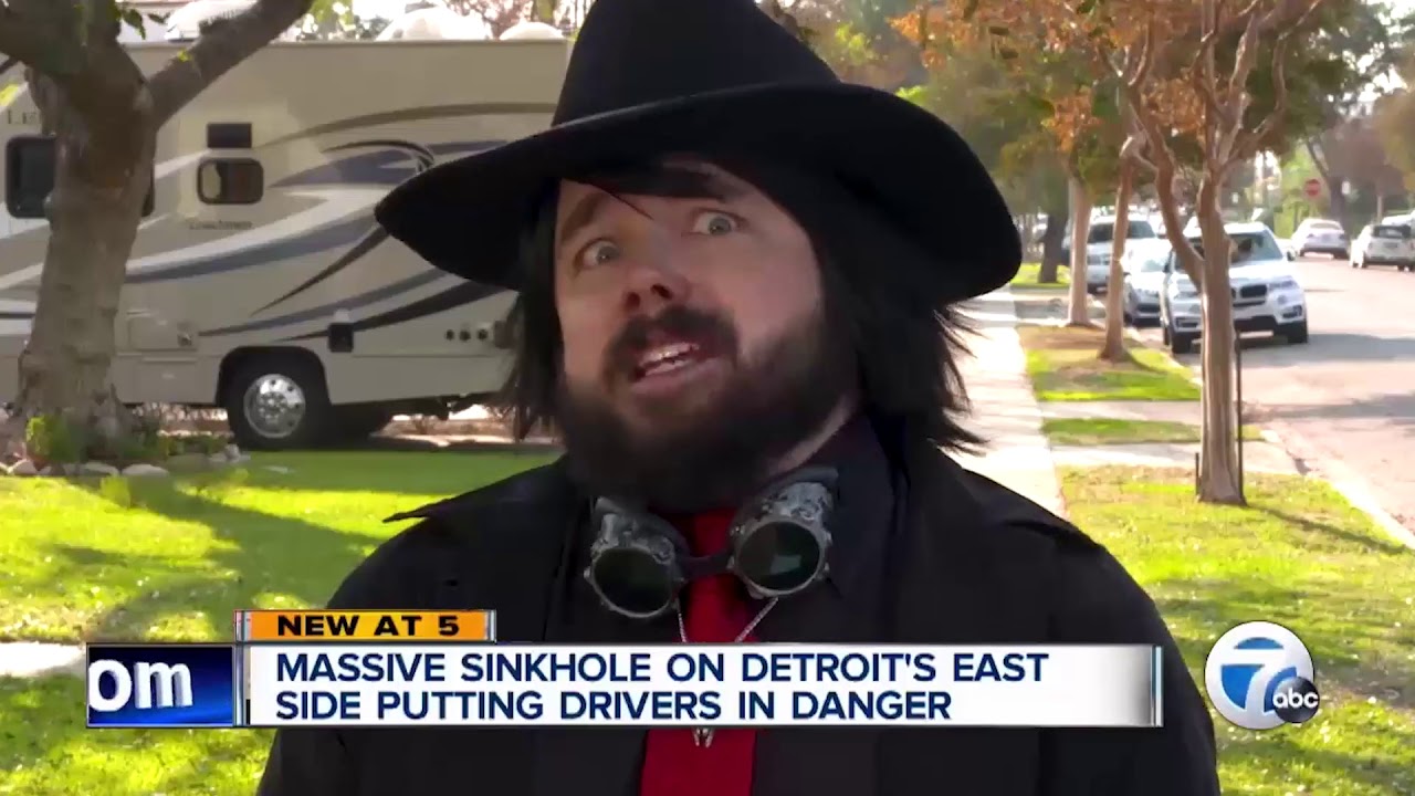 Weird Guy Nearly Falls Into Sinkhole